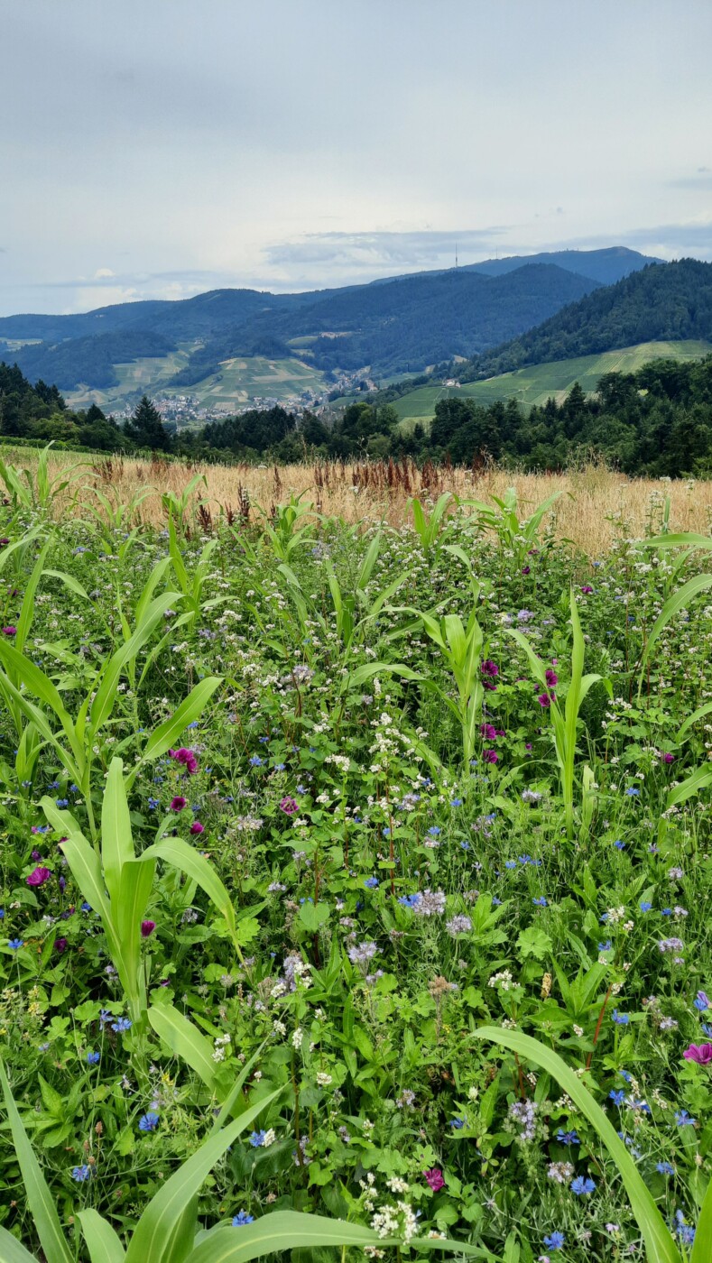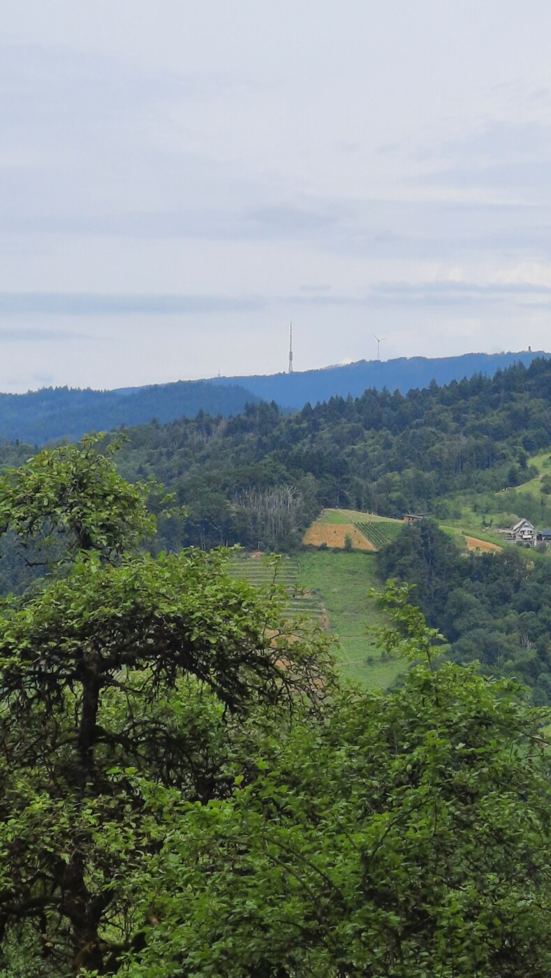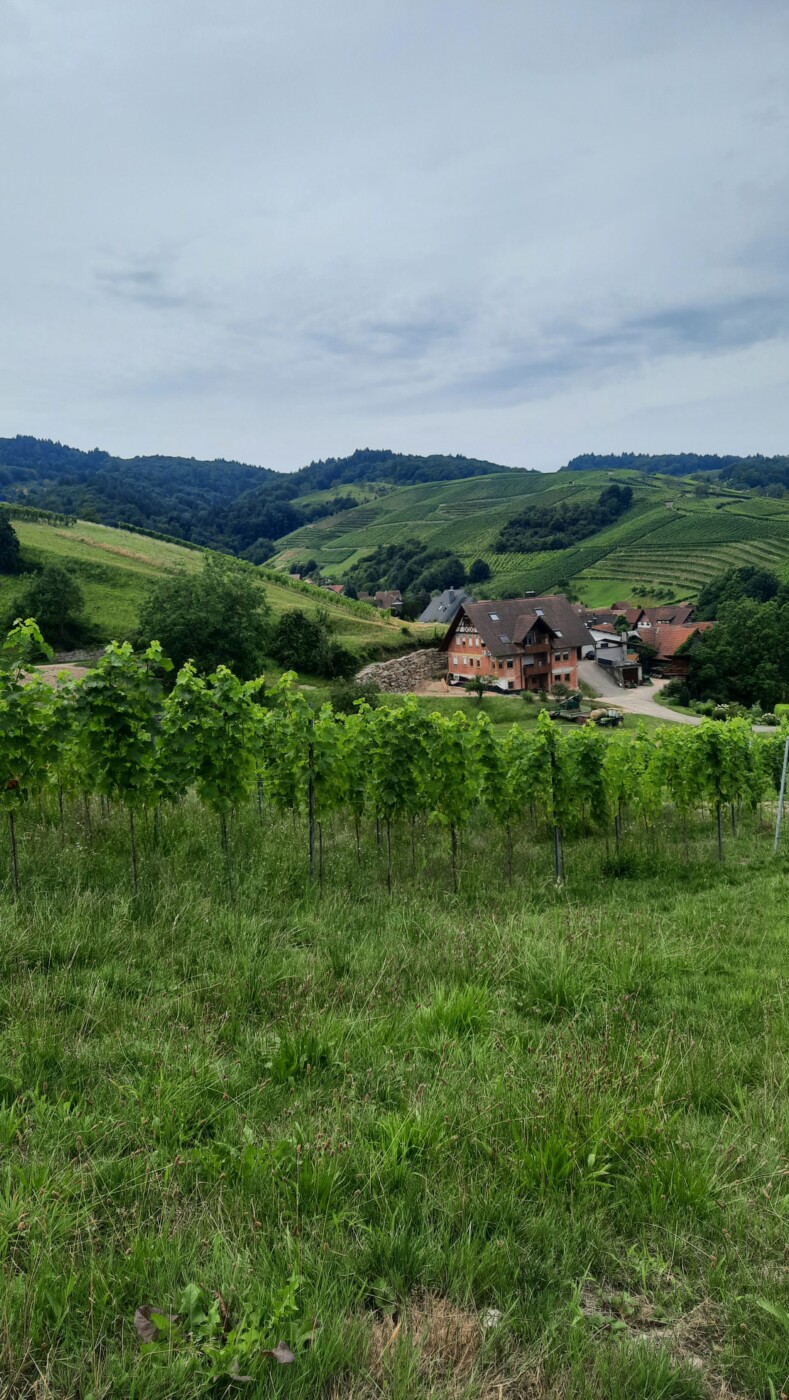 Rathaus Waldulm, Häselhof, Zinselburehof, Rotebene, Fischers Wäldele, Scherd, Pfaffenberg, Rathaus Waldulm. 10 km 310 Hm. Schöne Tour durch die Weinberge mit Ausblicken auf Rheinebene und Hornisgrinde.